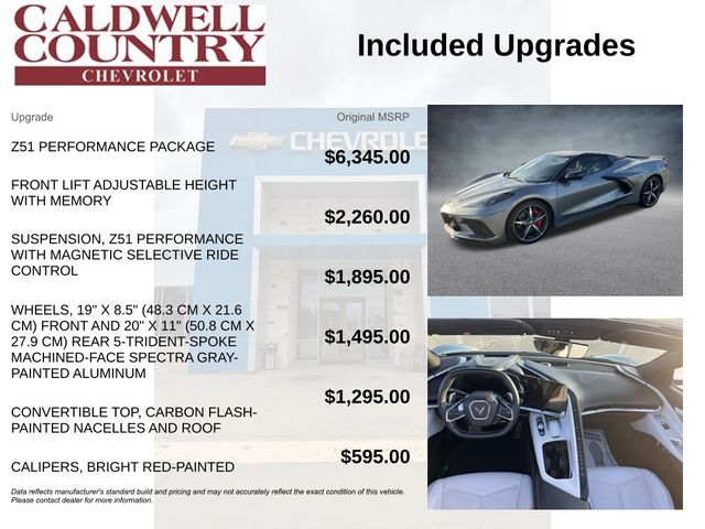 This Corvette is equipped with an impressive array of premium features that elevate the driving experience. The Z51 Performance Package delivers exceptional handling and braking, while the Magnetic Selective Ride Control suspension provides a smooth and responsive ride. The Bright Red-Painted Calipers and Carbon Flash Metallic-Painted accents add a touch of sophistication and style.