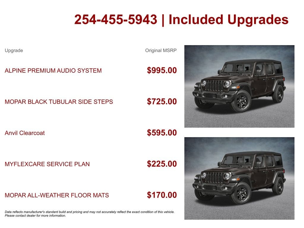 * MSRP is the Manufacturer's Suggested Retail Price (MSRP) of the vehicle. It does not include any taxes, fees or other charges. Consult your dealer for complete details.