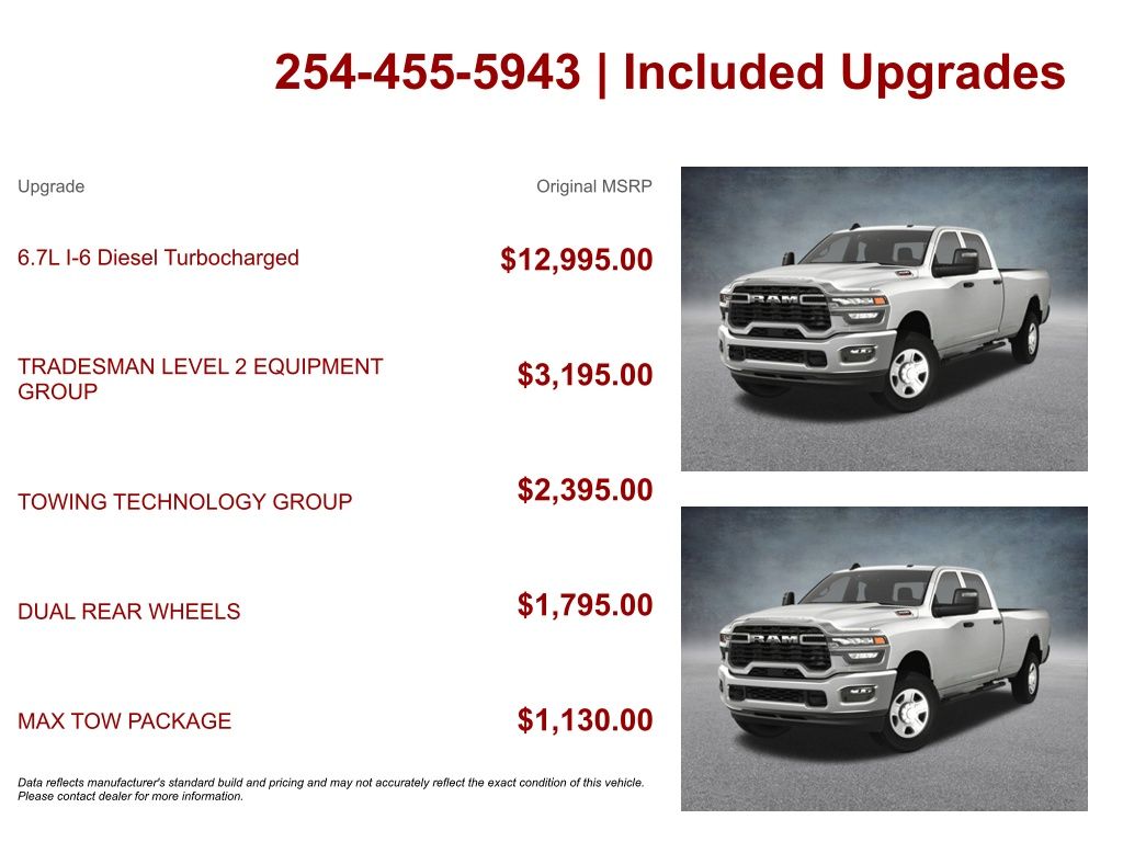 * MSRP is the Manufacturer's Suggested Retail Price (MSRP) of the vehicle. It does not include any taxes, fees or other charges. Consult your dealer for complete details.