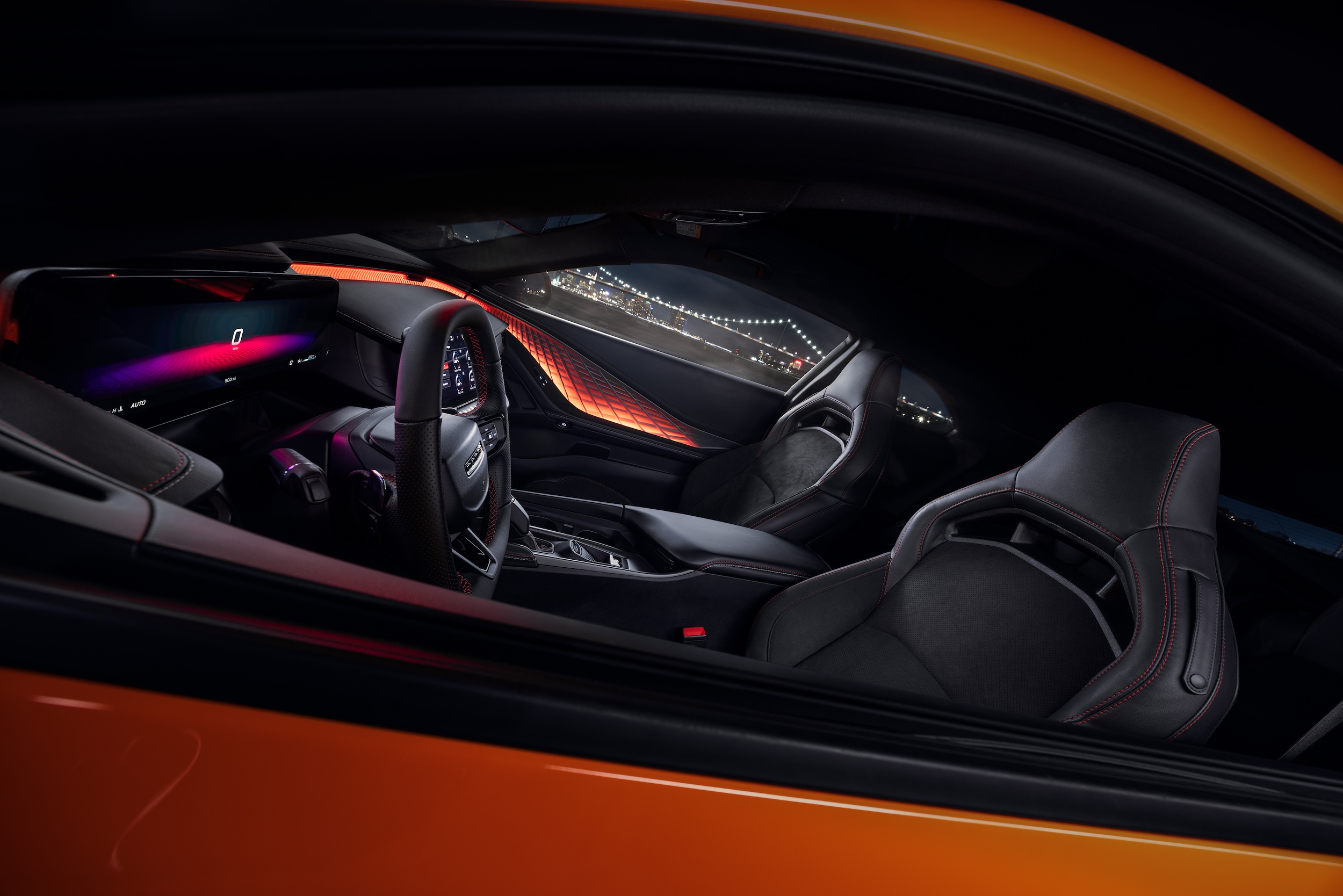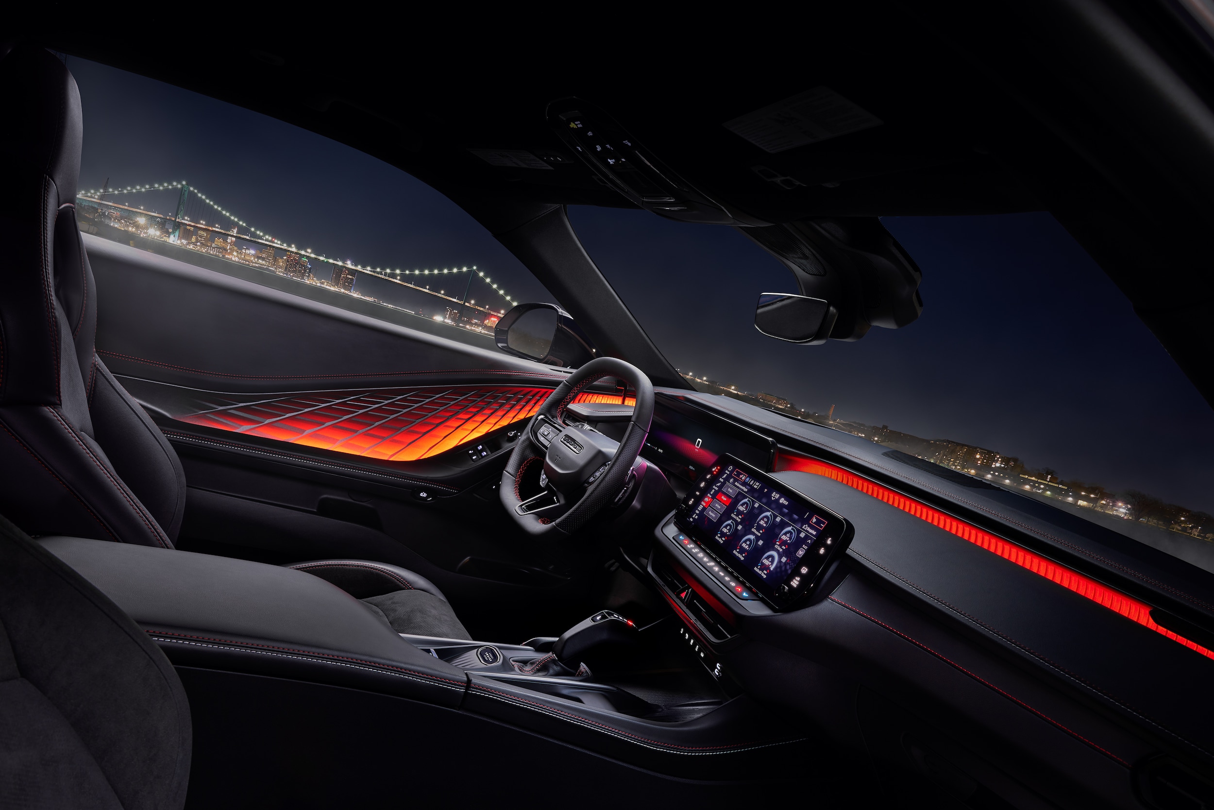 Inside, the spacious cabin is lined with premium materials and loaded with modern amenities. Sink into the supportive performance seats, available in leatherette, cloth, or leather upholstery. The intuitive 12.3-inch Uconnect 5 touchscreen with navigation keeps you connected and in control. From the driver-focused cockpit to the carefully designed details, the Charger Daytona's interior is a testament to Dodge's commitment to performance and style.